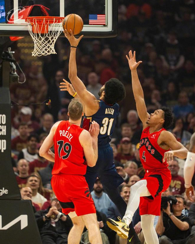 北京时间4月21日,NBA季后赛首轮继续火热开打。骑士坐镇主场与猛龙展开系列赛G2的对决,此战托马斯布莱恩特继续伤停,阿特金森沿用了詹姆斯哈登、多诺万米切尔、迪恩韦德、莫布里、贾莱特阿伦的首发五虎。G1表现出色的斯特鲁斯,则继续担任替补。奎克利因为腿筋拉伤继续缺战,多伦多的首发五虎依然是英格拉姆、斯科蒂巴恩斯、珀尔特尔、RJ巴雷特与谢德。猛龙渴望扳平大比分,克利夫兰则志在捍卫主场。两大劲旅,在此役继续展开激烈厮杀。